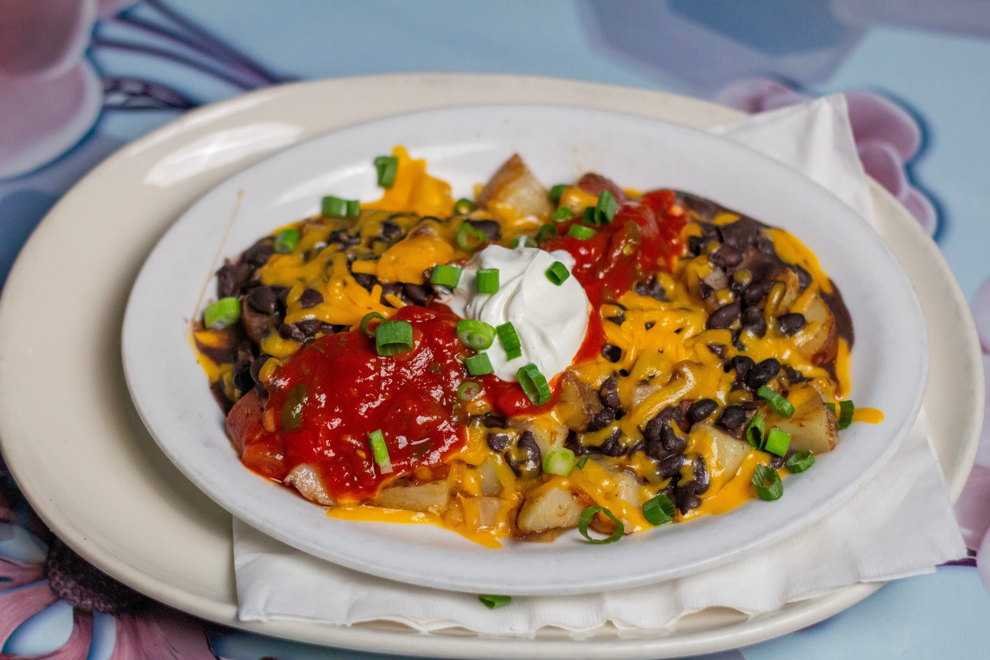 grilled red potatoes with sautéed green peppers, onions, tomatoes, spinach, basil & garlic
